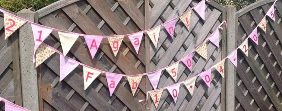 My Handmade personalised or themed Bunting is unique, it's made to order and a lovely keepsake gift for any occasion that you won’t find on the high street: Weddings, Special birthdays, ‘1 Today’, ‘Flirty Thirty’, ‘21 Again!’ etc. To welcome a new baby, Christening or Naming ceremony. To save the date of any celebration.. or simply to add a dash or colour to the kitchen, garden or the playroom........... Crafted from quality fabrics, choose from a wide range of colours and themes. Each run is bespoke measuring from as little as 1.5 metres, up to 10m, or special order. As its handmade for you I can mix and match any colour scheme for any occasion, plain flags or adding any appliquéd letters, for example, children's names, dates, Mr &Mrs, Good Luck, Home Sweet Home, or the name of your business - the list is endless. I can also use your own fabric, coordinate with a wedding theme or a spare pillowcase makes lovely bunting to match bedding and curtains!! |